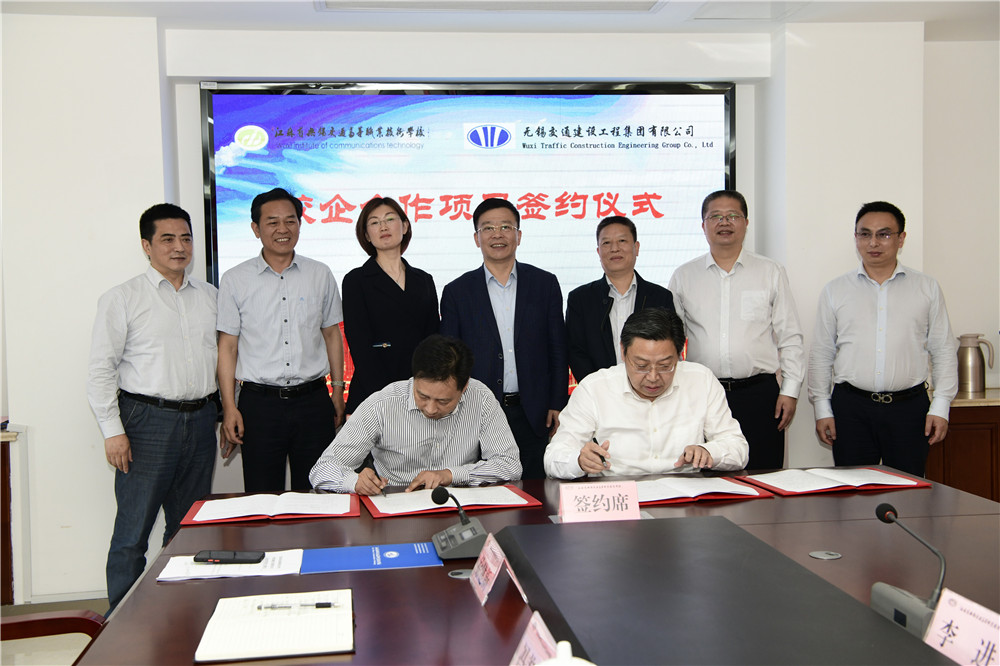 金副厅长出席了学校与无锡交建集团校企合作签约仪式,与无锡市交通产业集团有限公司总裁王国新共同为“江苏交通工程试验检测技术研究中心”揭牌。一行人还调研了无锡物联网创新中心有限公司、公安部交通研究所大数据分析集成指挥中心。