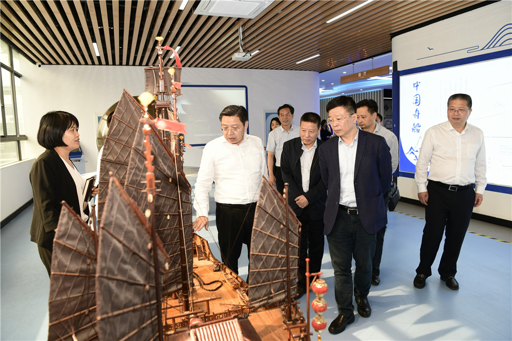 金副厅长一行视察指导了学校的船文化中心、物联网技术实训基地、交通装备工业机器人实训基地,听取了近阶段学校实训基地建设、校企合作、产教融合、人才培养的情况汇报,了解学校实训基地的运行模式及运行状况。他对学校教育链、人才链、产业链、创新链等方面取得的成效给予肯定。他提出,要在整体推进苏锡常都市圈职业教育改革创新、打造高质量发展样板的背景下,学校要进一步抢抓机遇,争取行业企业等各方面的支持,不断提升办学实力和服务社会能力。他强调,要积极推进校企深度融合,结合行业产业的需求,深化学校人才培养模式的改革创新,切实提升人才培养质量,在“强强联合、互利共赢”中助推校企双方的高质量发展。
