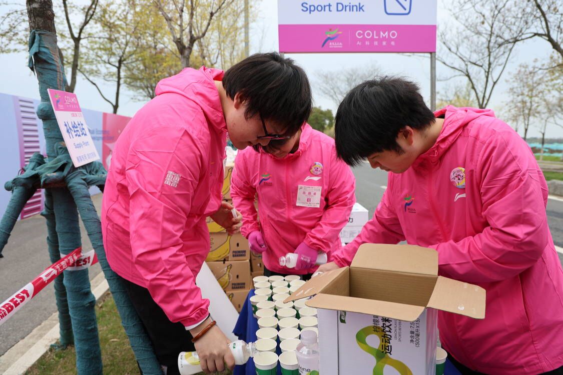随着比赛的开始,在马拉松赛道上,除了奋力奔跑的比赛者,学校志愿者们同样成为了一道美丽风景线。他们时刻准备好为选手提供饮水,补给海绵,准备水果。早上的气温较低,补给海绵的志愿者双手冻得通红,但他们的脸上却洋溢着喜悦的微笑。他们工作有条不紊,保证着道路上补给的充足。
