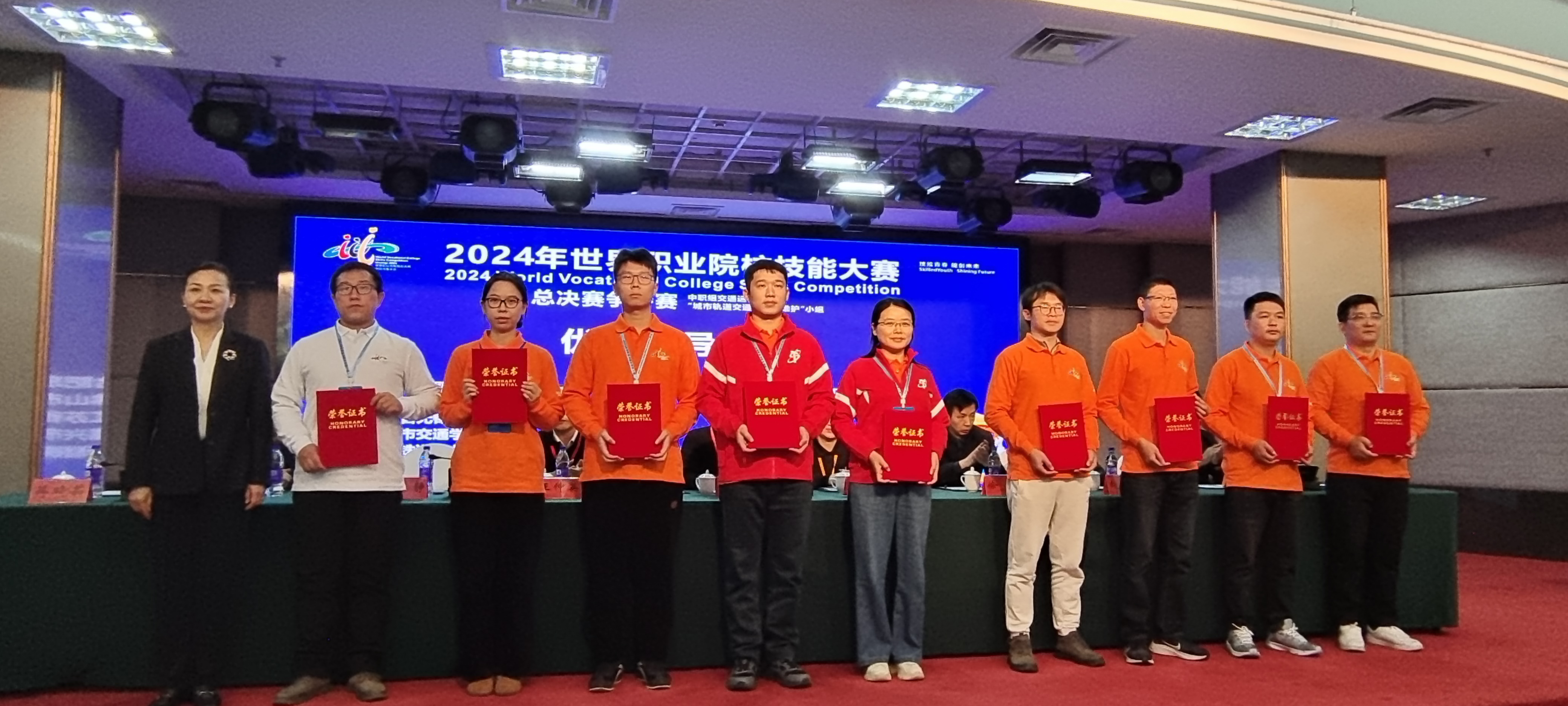 1025-29日,在新疆铁道职业技术学院举行的2024年世界职业院校技能大赛总决赛争夺赛中职组交通运输赛道“城市轨道交通运营与维护”小组赛项中,陈玺和浦豪文组建的学生团队,凭借扎实的专业技能和出色的创新能力,在众多参赛选手中脱颖而出,获得金奖,李俊、沈加仁获“优秀指导教师”称号,实现了学校在该赛项的历史性突破。