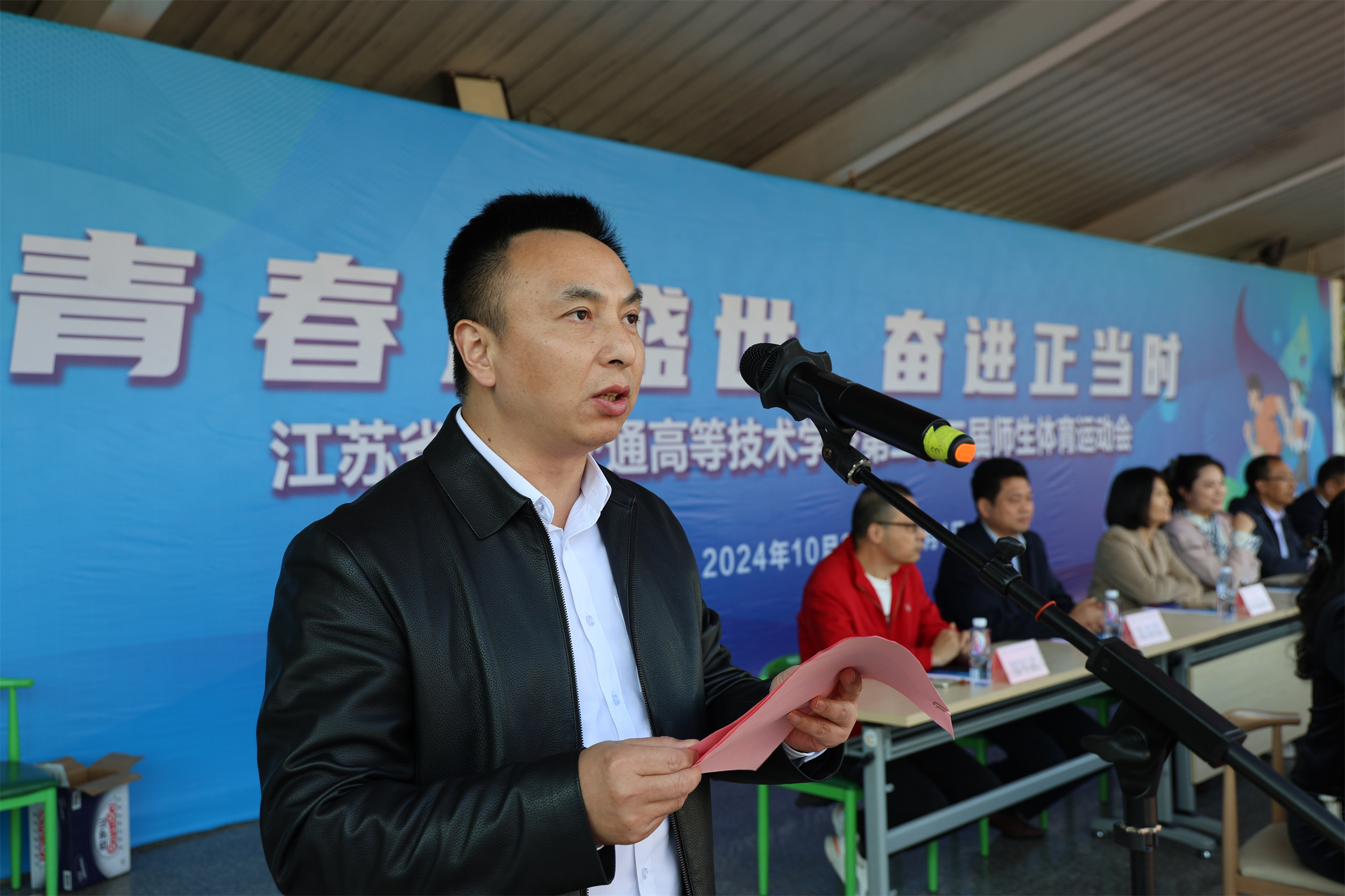 李进指出,本届运动会是在全校师生认真学习贯彻党的二十大和二十届三中全会精神的热潮中,在学校各部门的共同努力下进行的。近年来,学校坚持三全育人、五育并举,近阶段我校国家级成果捷报频传,我校学生陈玺、浦豪文同学在2024年世界职业院校技能大赛总决赛争夺赛中斩获金奖,我校冯美仙老师课程入选教育部2023年职业院校国家在线精品课程。这是全校教育教学成果的体现,更是全体师生精气神的生动诠释。