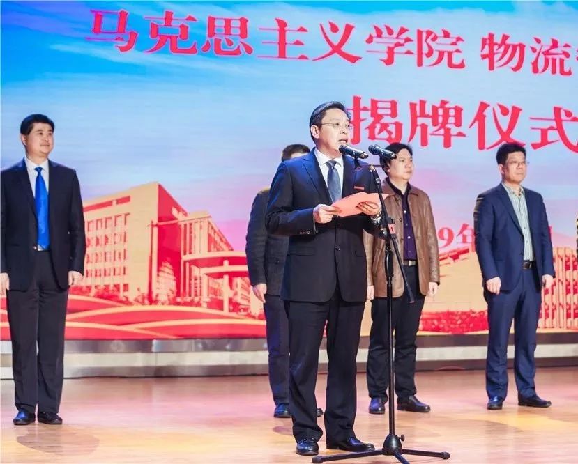 副厅长金凌和校党委书记李虎共同为马克思主义学院和物流管理学院揭牌。
