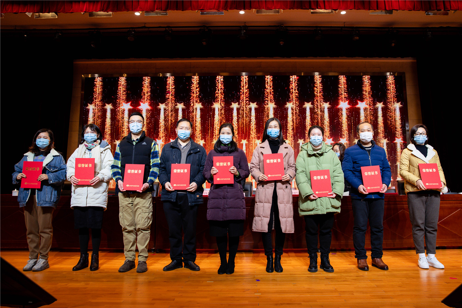 学校党委副书记、纪委书记朱雨兰宣读了学校“2020年十件大事”。学校副校长邢勇宣读《关于表彰学校2020年师德师风先进集体、师德师风先进个人的决定》,副校长倪依纯宣读2020年教职工获奖情况通报。会上,校领导为获奖集体和个人颁发荣誉证书。