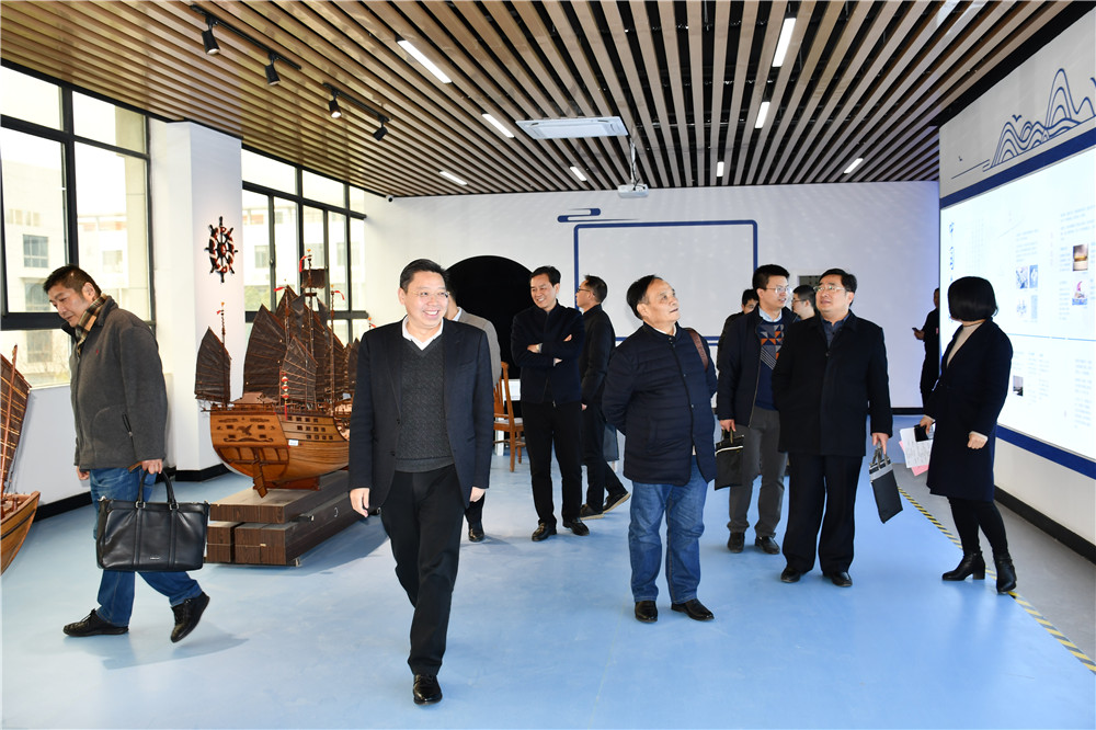 会后,辛望旦会长及王剑飚主任一行在李书记的陪同下,参观了学校焊接实训基地与船文化中心。