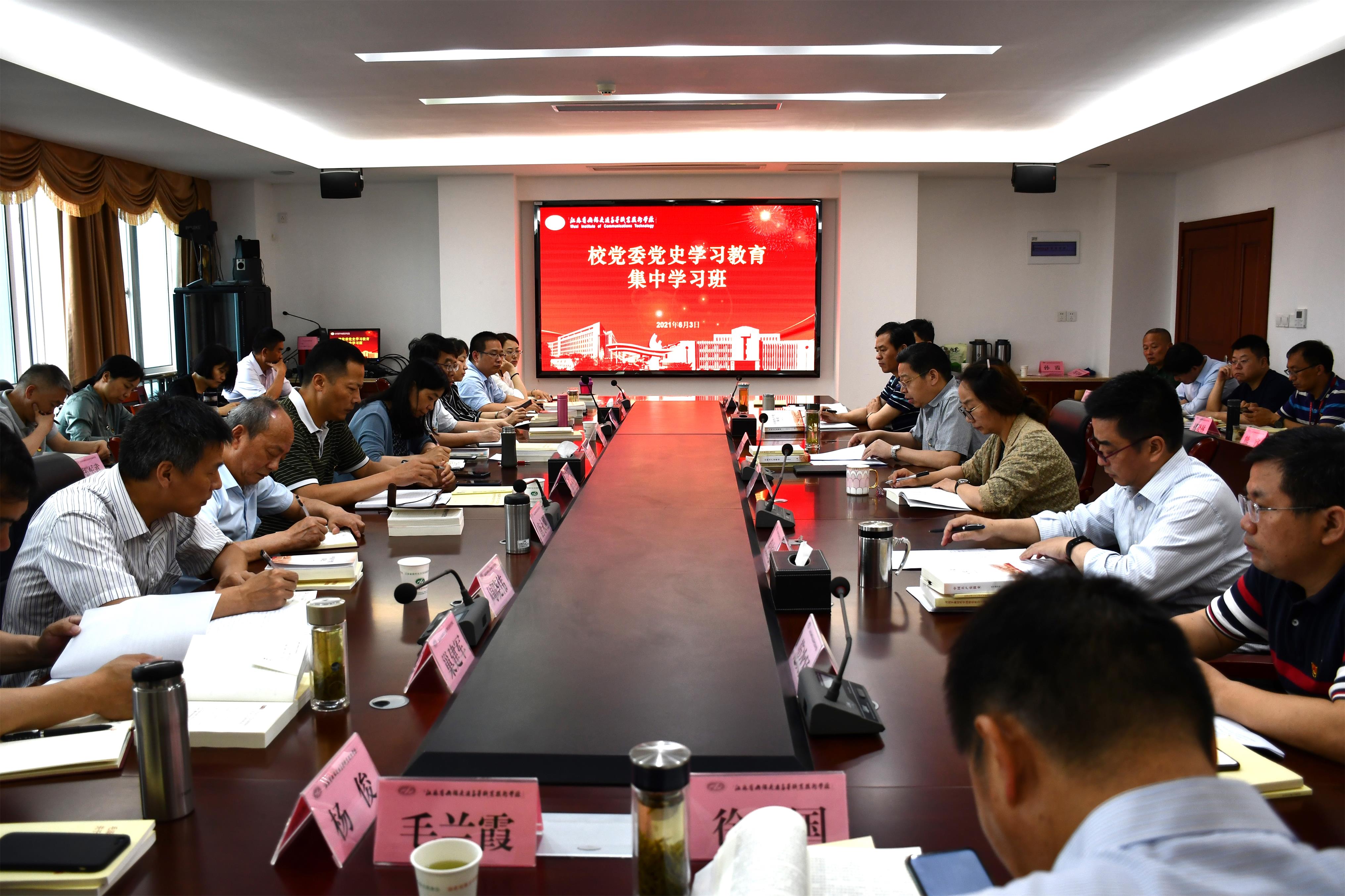 6月3日、4日、9日,学校举办为期三天的党史学习教育集中学习班。全体党委委员,各处室、院部负责人,各党总支(直属党支部)负责人及学校党史学习教育办公室成员近50人参加学习。
