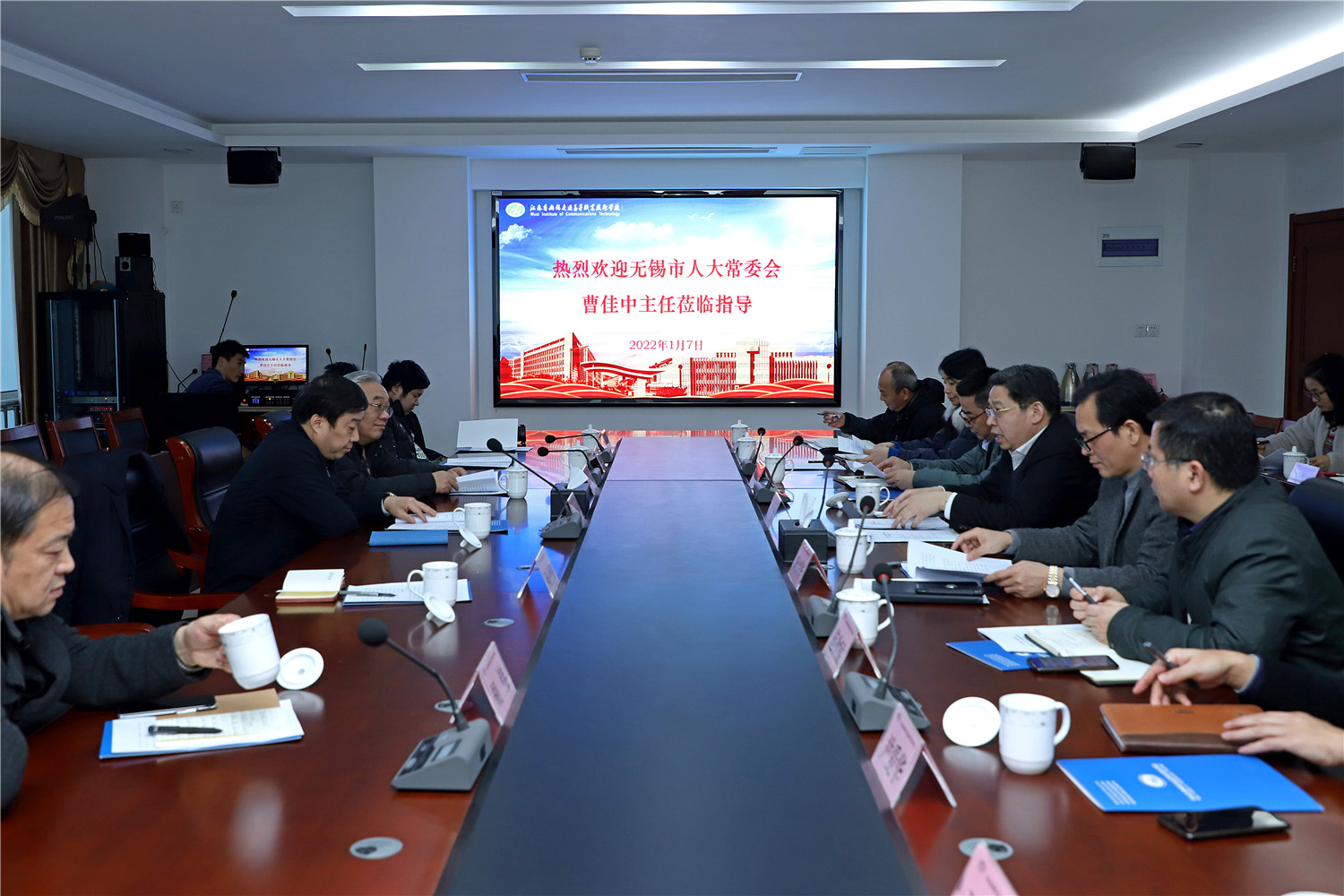 1月7日,无锡市人大常委会副主任、市综合交通运输学会理事长曹佳中,无锡市综合交通运输学会常务副理事长薛军一行莅临学校视察调研,学校党委书记、校长李虎,学校党委委员、副校长耿兴华、倪依纯陪同视察调研活动