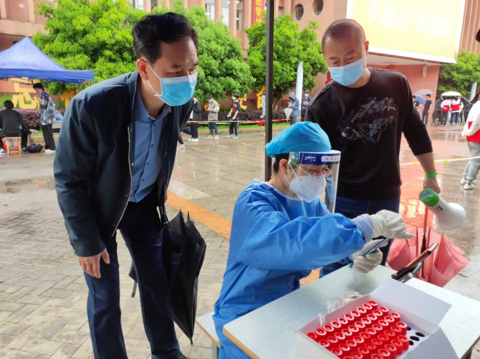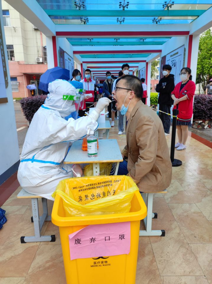截止当前,学校已经实行封闭管理24天,学校开展全员核酸检测五轮。面对在校师生员工4千人,任务重,工作量大,学校共30余名干部职工和教师响应学校号召,化身“大白”和“小蓝”投入志愿服务工作。他们与钱桥医院、荣巷街道医生一起,并肩投入到核酸采样一线繁重的工作中。