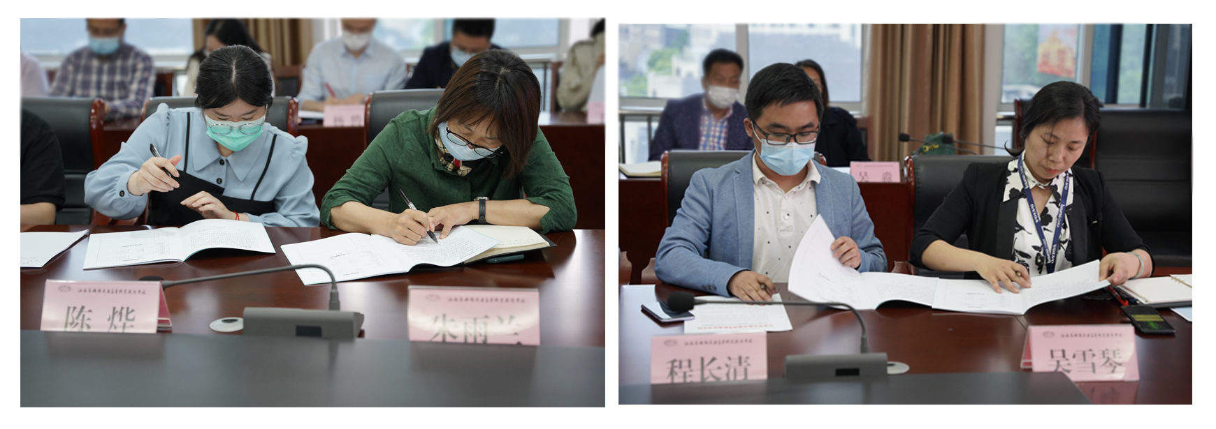 教务处(教师发展中心)冯美仙处长宣读了青蓝工程师徒结对名单。师傅由各专业有经验的优秀教师担任,指导和帮助新教师在教学上快速成长。师徒双方签订了“青蓝工程”结对协议,师徒代表俞浩和陈烨两位老师作为代表发言,表达了师徒携手同心、共同学习、共同成长、不断追求进步的决心。