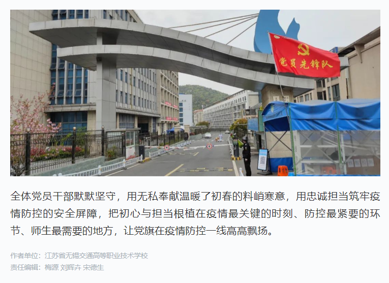学习强国:江苏省无锡交通高等职业技术学校:党员坚守“最前沿” 师生共同抗疫显真情