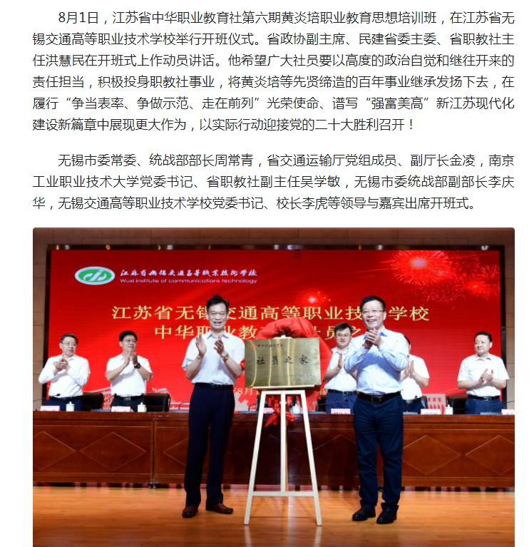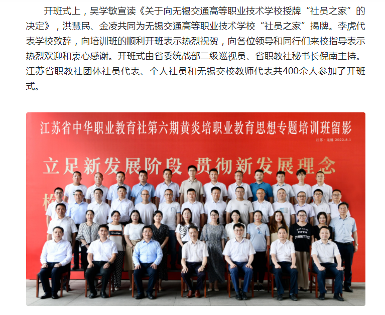 江苏省中华职业教育社第六期黄炎培职业教育思想培训班开班式在无锡交通高等职业技术学校举行
