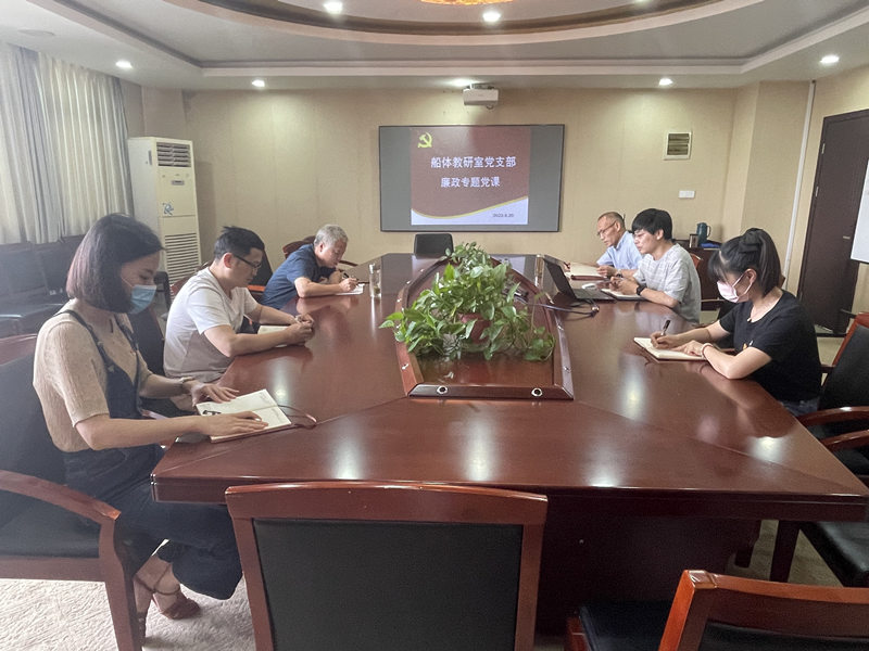为进一步引导党员干部和教职员工强化政治意识、规矩意识、廉洁意识,提高拒腐防变能力,营造风清气正的政治生态和干事创业的良好氛围,一体推进“不敢腐、不能腐、不想腐”,以优异成绩迎接党的二十大胜利召开,根据校党委《关于组织开展党风廉政建设月活动的通知》的要求,620日,船体教研室党支部举行支部书记讲廉政教育专题活动。
