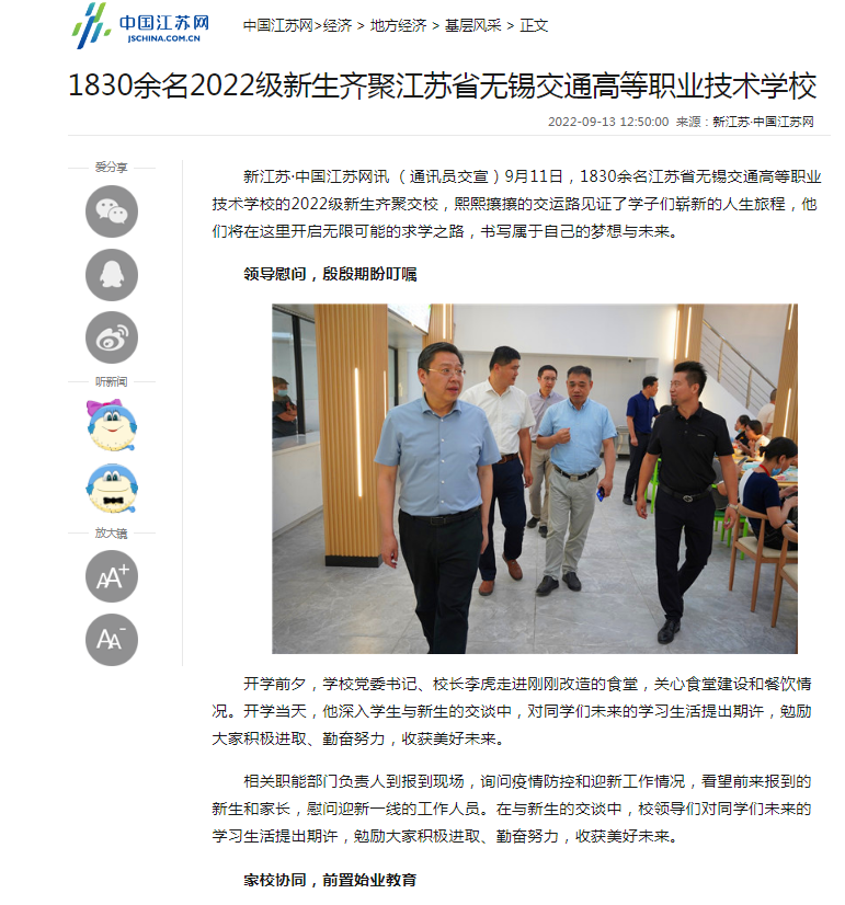 中江网:1830余名2022级新生齐聚江苏省无锡交通高等职业技术学校