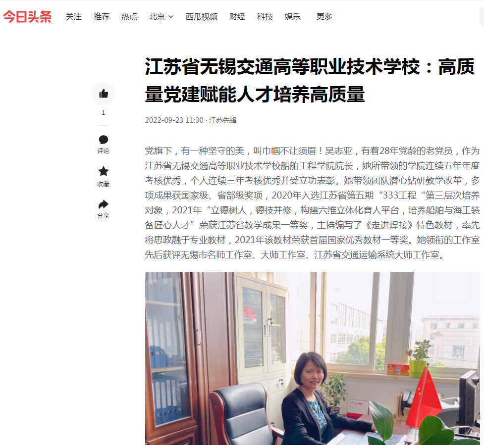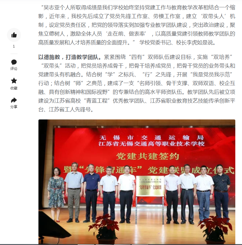 今日头条:江苏省无锡交通高等职业技术学校:高质量党建赋能人才培养高质量