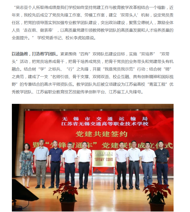 新华日报党建:江苏省无锡交通高等职业技术学校: 高质量党建赋能人才培养高质量