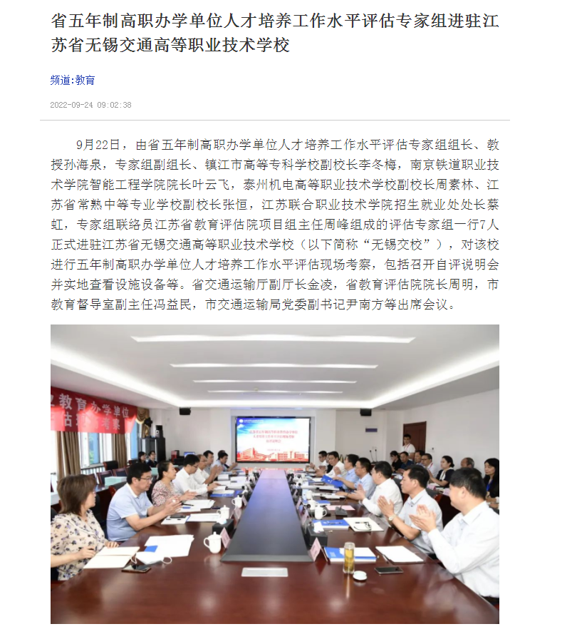 交汇点:省五年制高职办学单位人才培养工作水平评估专家组进驻江苏省无锡交通高等职业技术学校