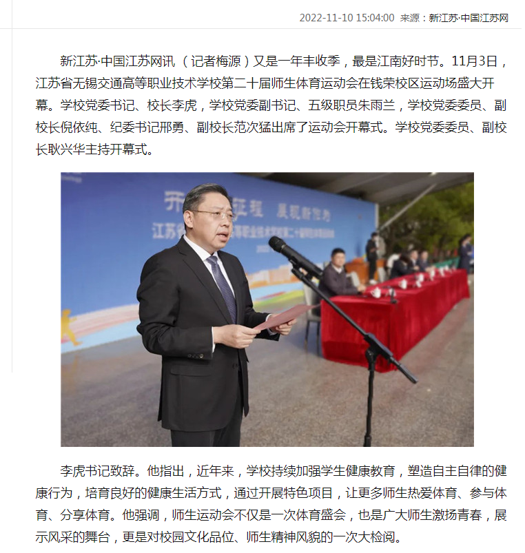 中江网:江苏省无锡交通高等职业技术学校举行第二十届师生体育运动会开幕式