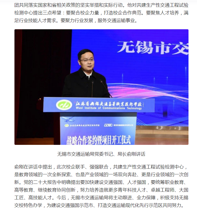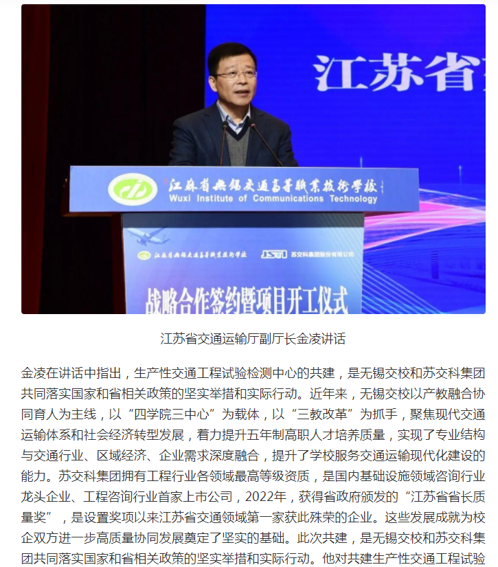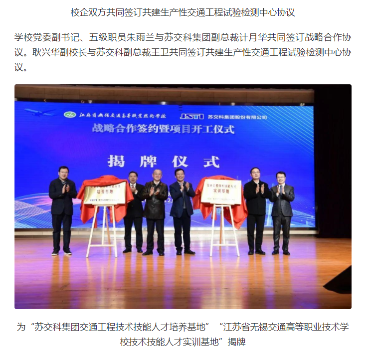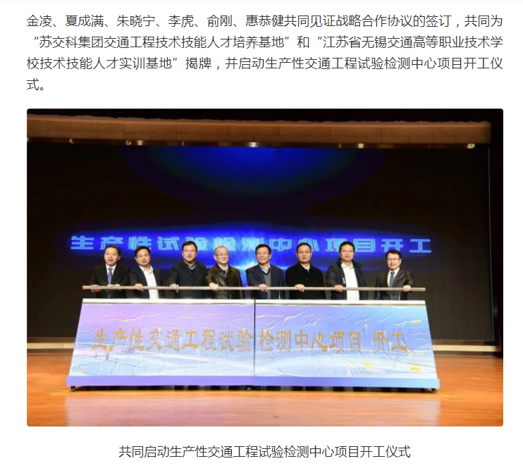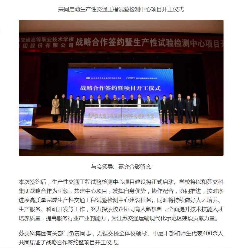 交汇点:无锡交校与苏交科集团举行战略合作签约暨生产性试验检测中心项目开工仪式