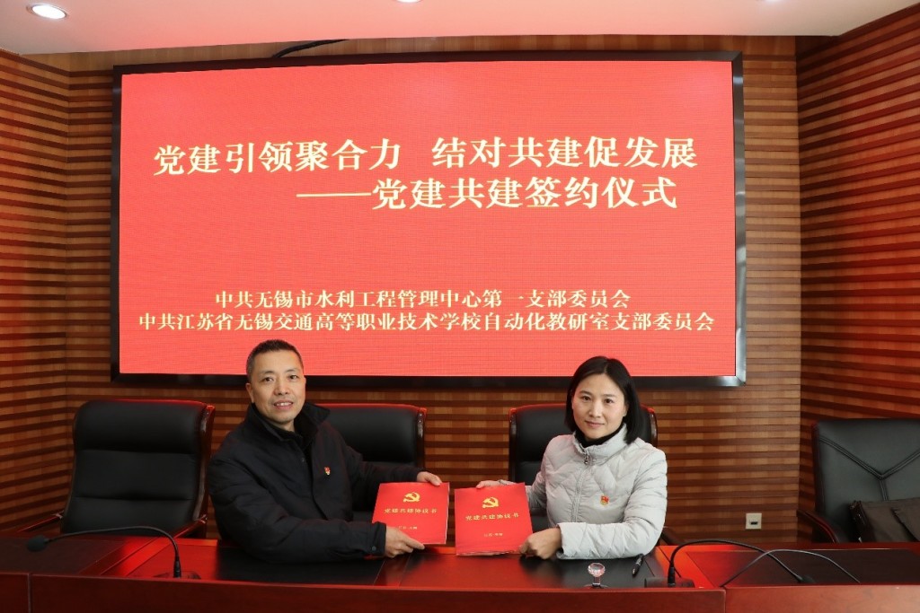 为深入学习贯彻党的二十大精神,践行敢为、敢闯、敢干、敢首创的“四敢”精神,进一步优化整合党建资源,丰富党建品牌建设内涵,2月15日下午,机电工程学院自动化教研室党支部与无锡水利工程管理中心第一党支部举行党建联盟签约仪式,签约仪式在无锡市水利工程管理中心(以下简称“中心”)举行。校党委委员、副校长耿兴华,机电工程学院党总支书记徐小国,机电工程学院院长夏春荣,机电工程学院自动化教研室党支部书记孔喜梅,无锡市水利工程管理中心党总支副书记、副主任赵欢,无锡市水利工程管理中心第一支部书记、副主任边晓阳,以及双方支部代表出席活动,活动由中心副主任边晓阳主持。