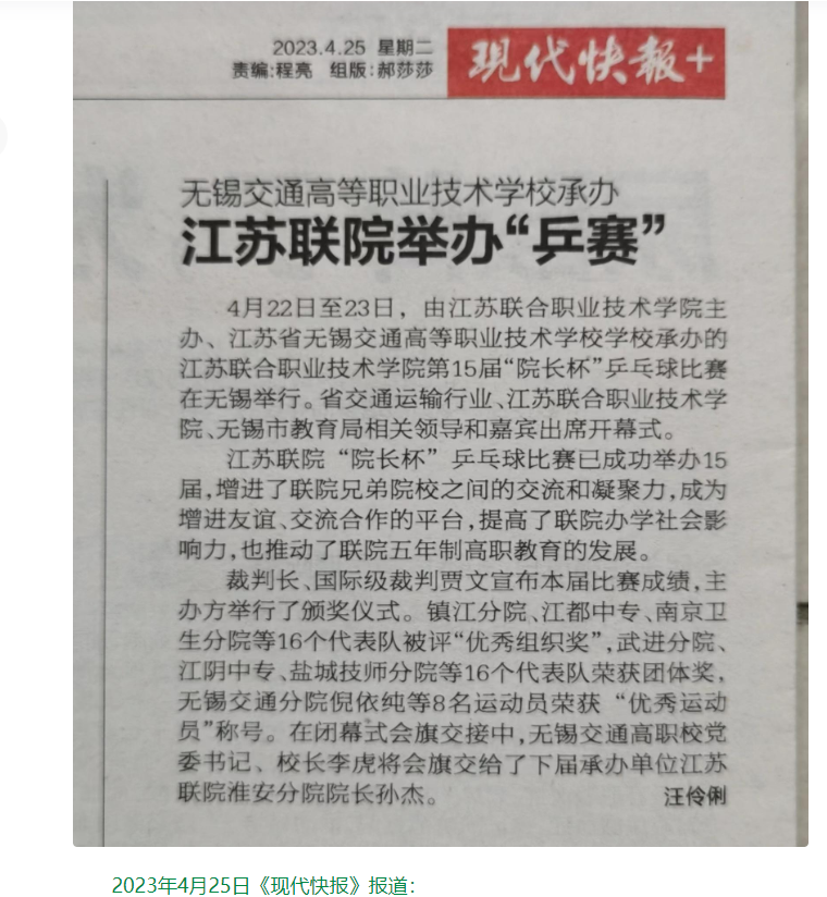 现代快报:江苏联院举办“乒赛”