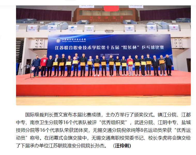 今日头条:江苏联合职院在无锡举办第15届“乒赛”,无锡交通高职校承办
