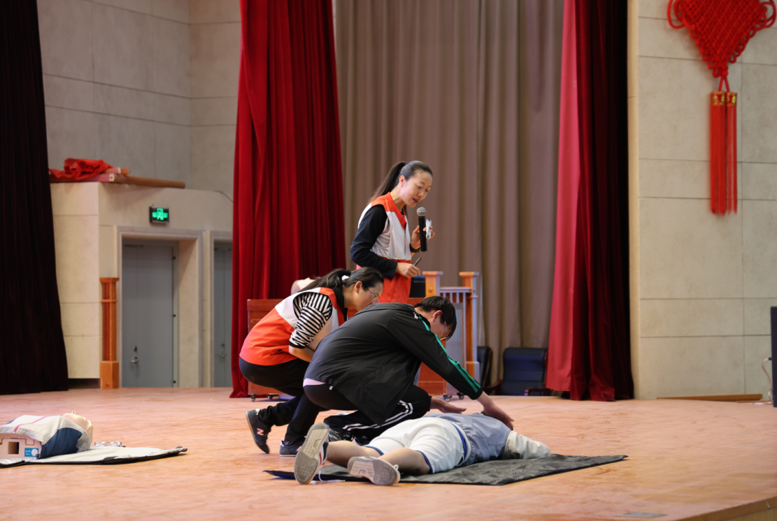 活动初始,红十字会培训老师向师生们介绍了红十字会的起源发展、工作职责、标志及“人道、博爱、奉献”的红十字会精神,使同学们对红十字会有了初步了解。随后,红十字会培训老师结合理论知识和实际救护技巧对生活中遇到突发状况急救、徒手心肺复苏、溺水紧急救护等内容作了详细讲解。为了使师生们更加深入了解各项救护技巧、掌握心肺复苏要领、培训老师和师生们在现场展开了深入互动,对心肺复苏进行了实操演练、手把手向同学们传授了急救手法和注意事项。