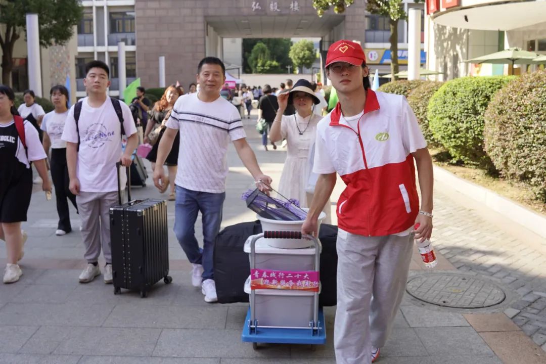 萌新们和父母一同走进学校,迎接他们的是交校老师和志愿者们温暖的笑脸。志愿者们身着志愿马甲在校园里穿梭,为家长和学生带来最热情和最贴心的服务体验。在报到现场,新生们根据指南找到各自学院和班级,他们与辅导员和班主任第一次见面共同开启校园新生活。