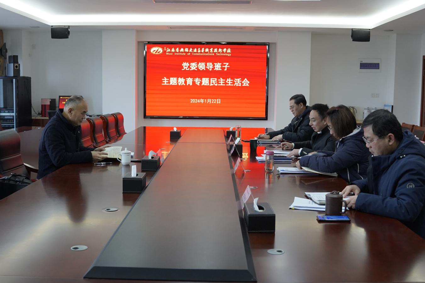 2024年1月22日下午,学校召开党委领导班子主题教育专题民主生活会,会议紧扣学习贯彻习近平新时代中国特色社会主义思想这一主题,聚焦“学思想、强党性、重实践、建新功”总要求,严肃开展批评和自我批评,以扎实作风、务实举措切实抓好问题整改。校党委书记、校长李进主持会议。省交通运输厅机关党委副书记、一级调研员李晴良到会指导,校党政办公室、组织人事处、纪委办公室等职能部门负责人列席会议。