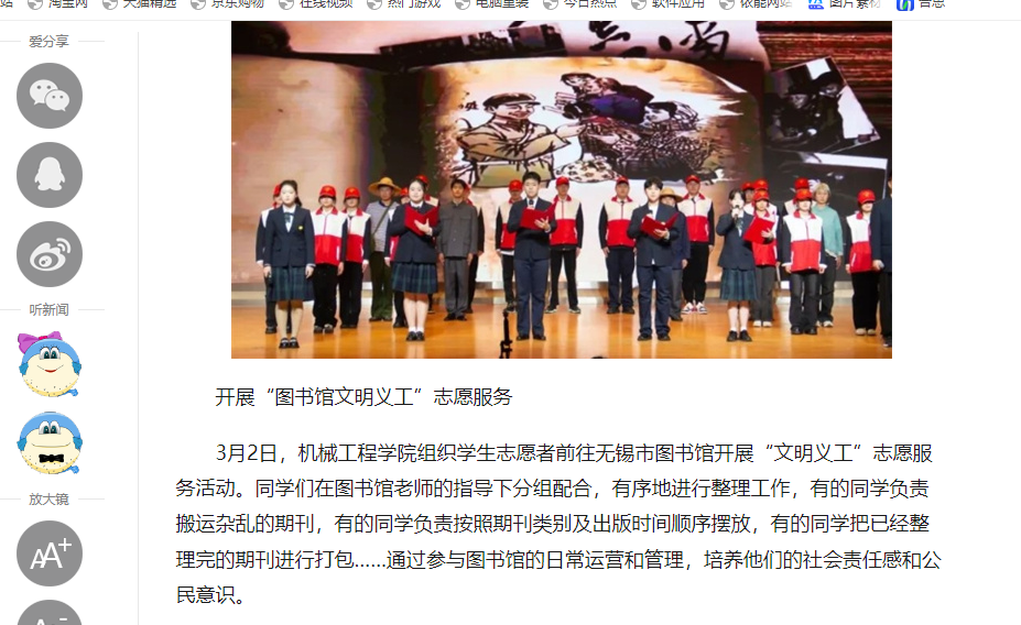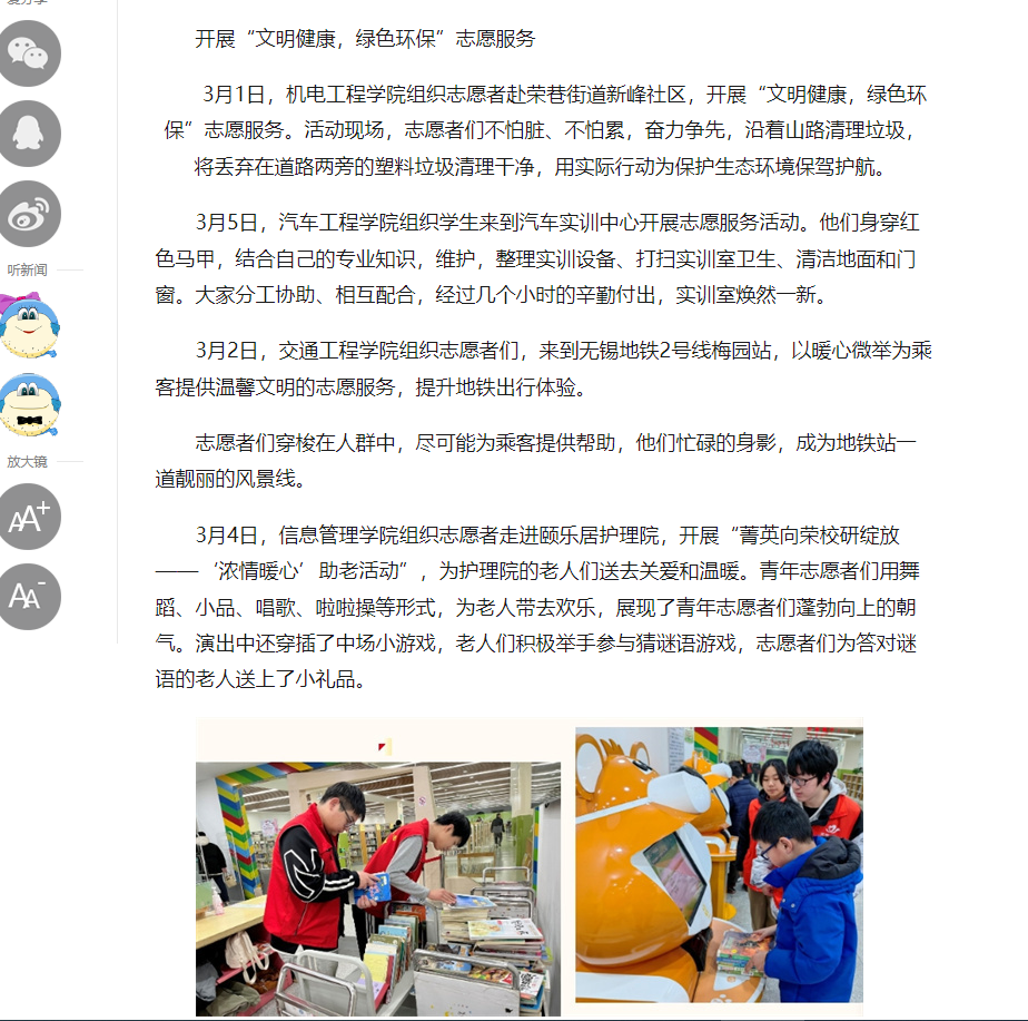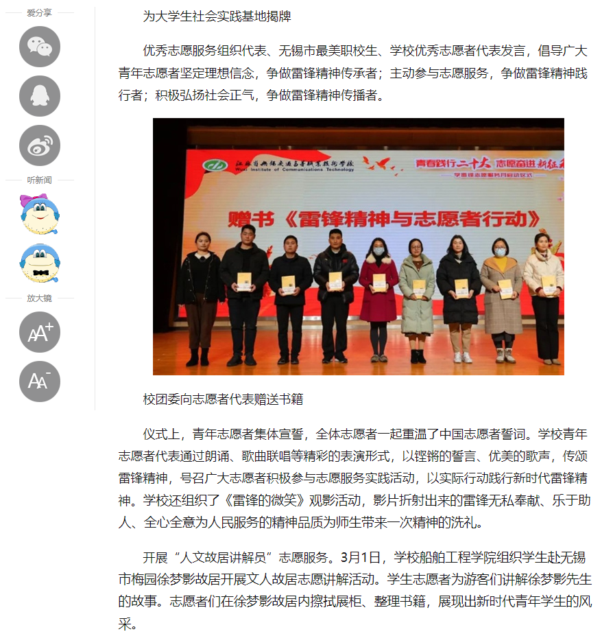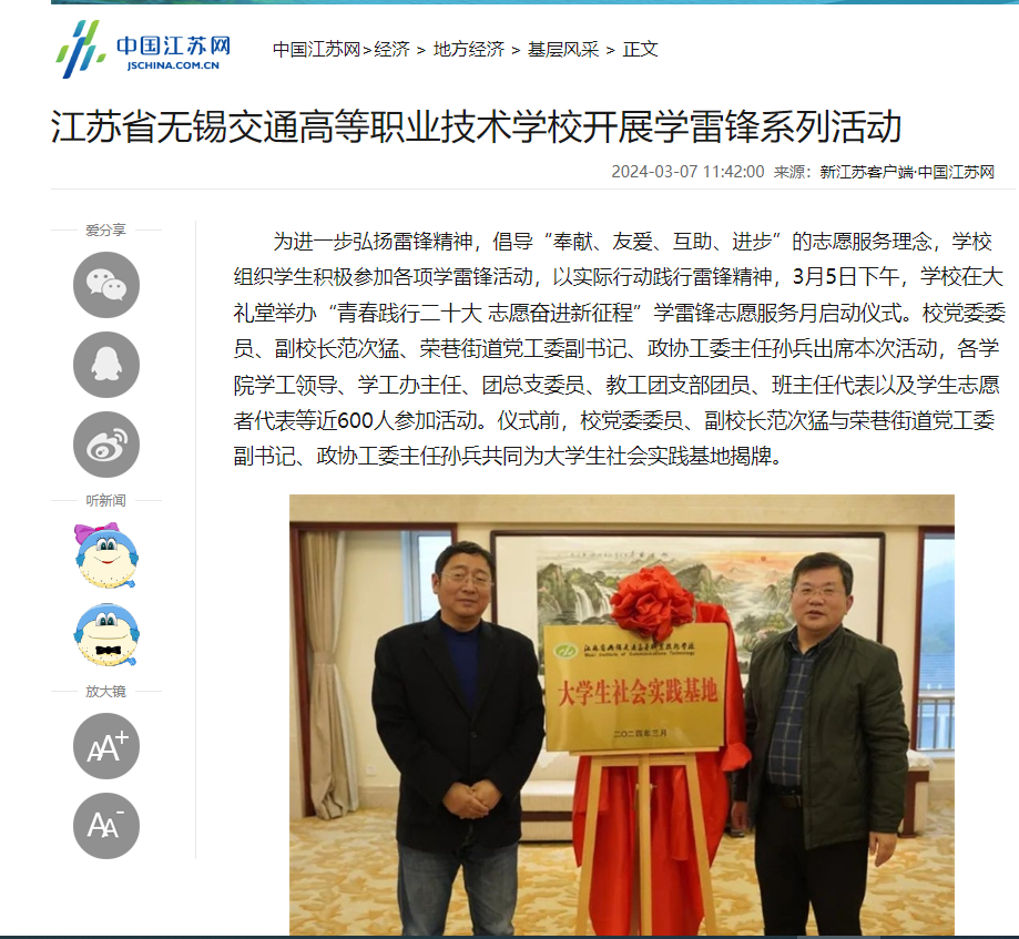中江网:江苏省无锡交通高等职业技术学校开展学雷锋系列活动