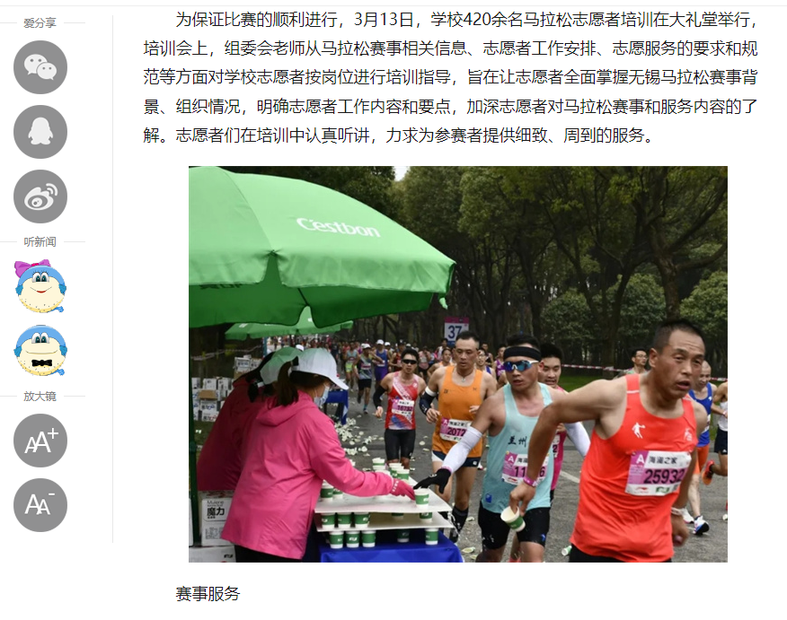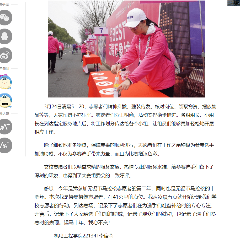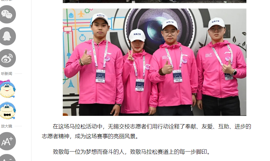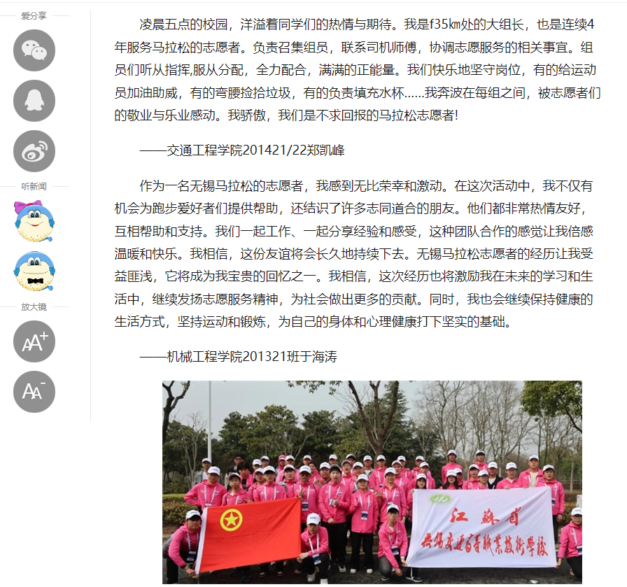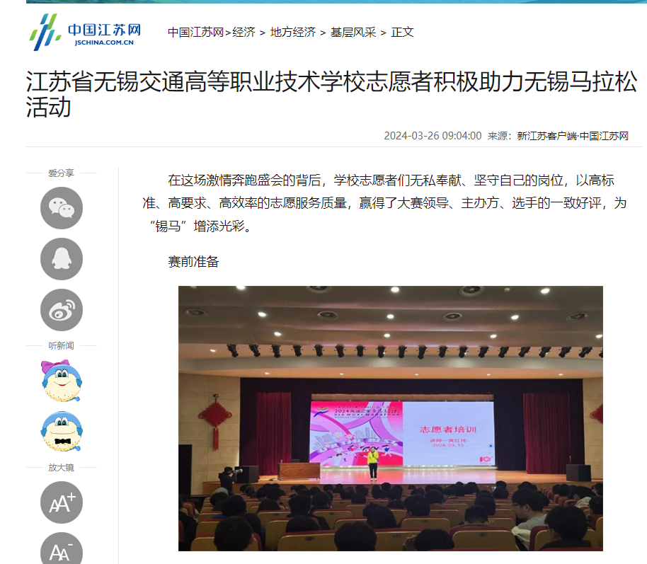 中江网:江苏省无锡交通高等职业技术学校志愿者积极助力无锡马拉松活动