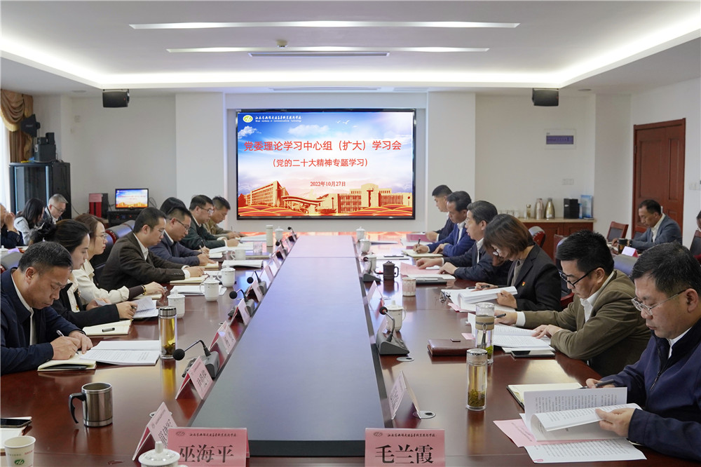10月27日,学校召开党委理论学习中心组(扩大)学习会,专题学习党的二十大精神,开展集中研讨交流,部署安排学校学习宣传贯彻党的二十大精神工作。学校党委书记、校长李虎主持会议并讲话。