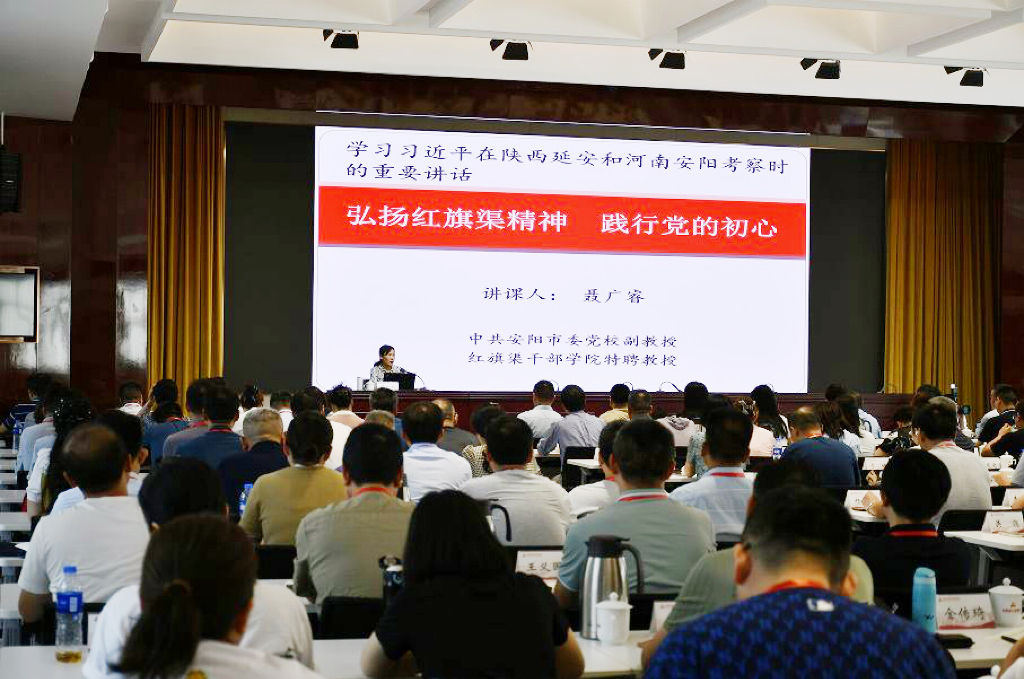 红旗渠干部学院特聘教授聂广睿的专题讲座《弘扬红旗渠精神 践行党的初心》,从人工天河、太行丰碑、践行初心三个部分,由历史到现实讲述了红旗渠精神的生命伟力,深入分析了红旗渠精神带给我们的历史启示。