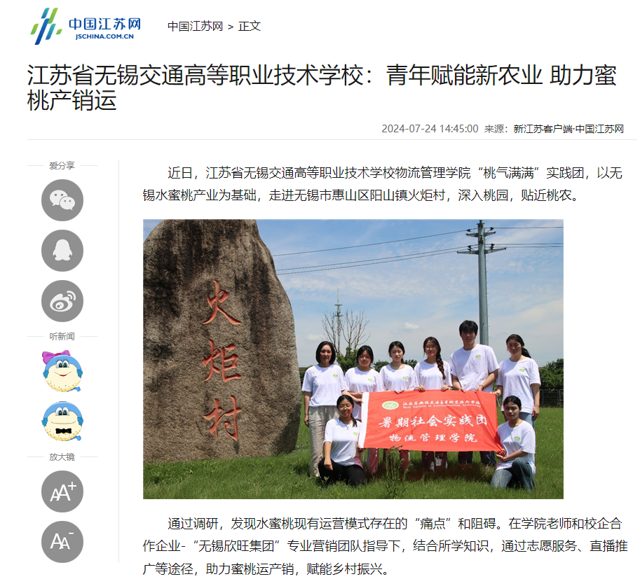 中江网:江苏省无锡交通高等职业技术学校:青年赋能新农业 助力蜜桃产销运