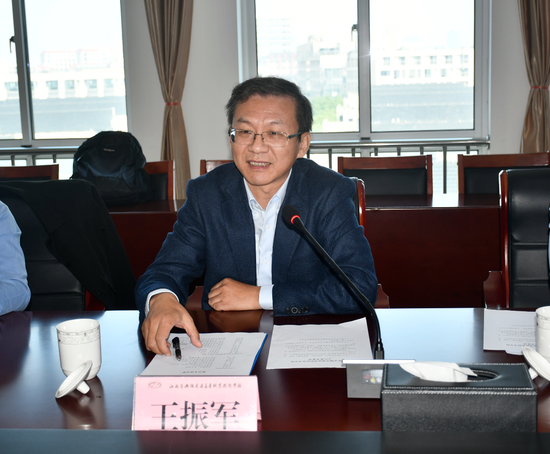 座谈会上,王振军介绍了人民交通出版社的基本情况,提出希望与学校开展多方面合作,支持学校教材开发,保障教学资源建设,共同为交通人才的培养、促进交通事业的发展贡献力量。