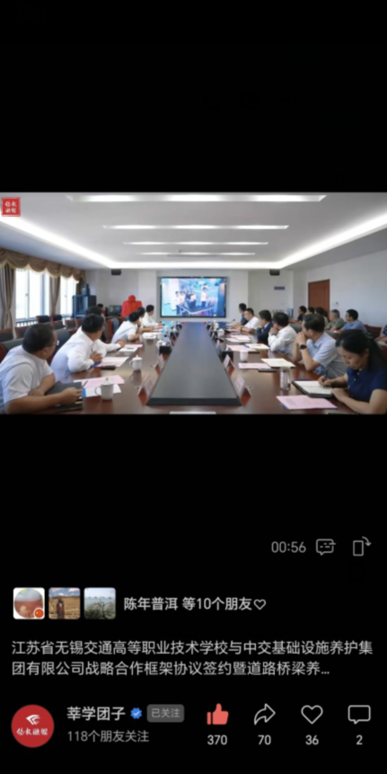 中江网:江苏省无锡交通高等职业技术学校举行与中交基础设施养护集团有限公司校企战略合作框架协议签约暨道路桥梁养护技术工程研究中心揭牌仪式