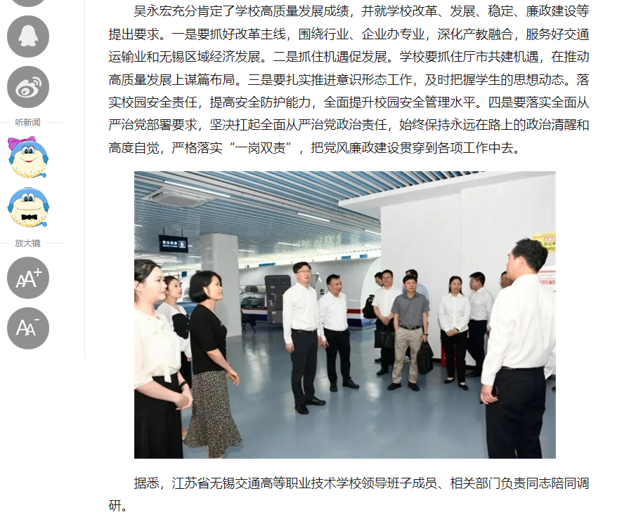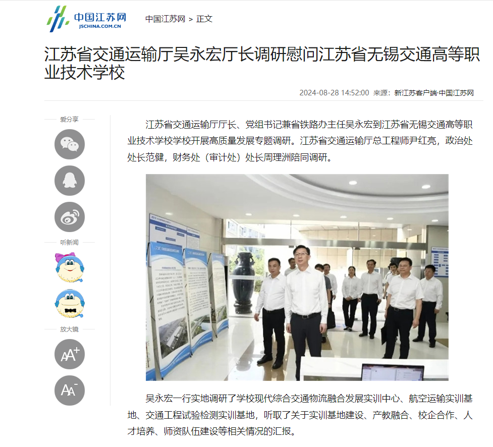 中江网:江苏省交通运输厅吴永宏厅长调研慰问江苏省无锡交通高等职业技术学校