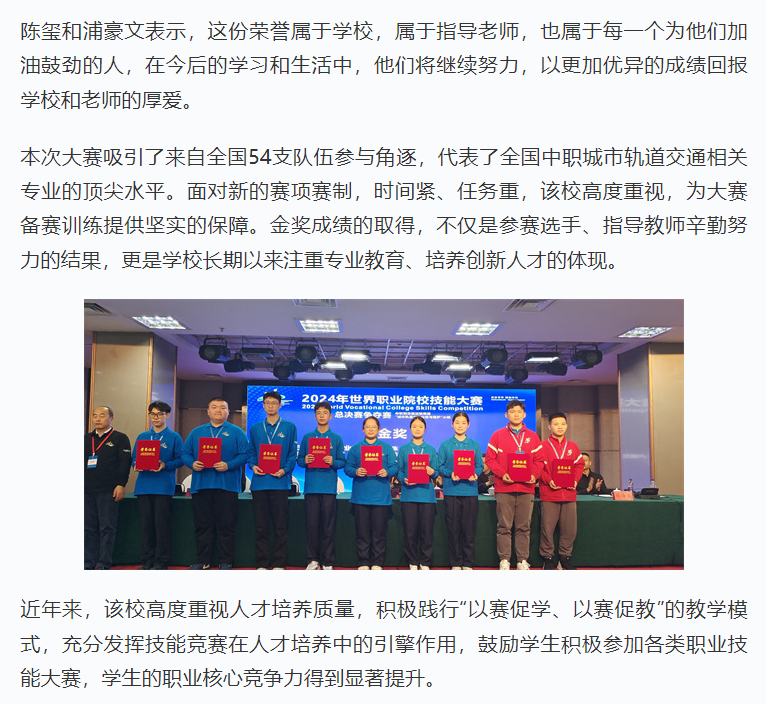 中江网:无锡学生团队荣获2024年世界职业院校技能大赛争夺赛城轨运营与维护赛项金奖