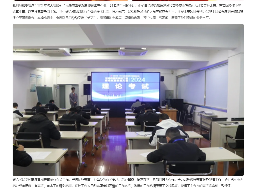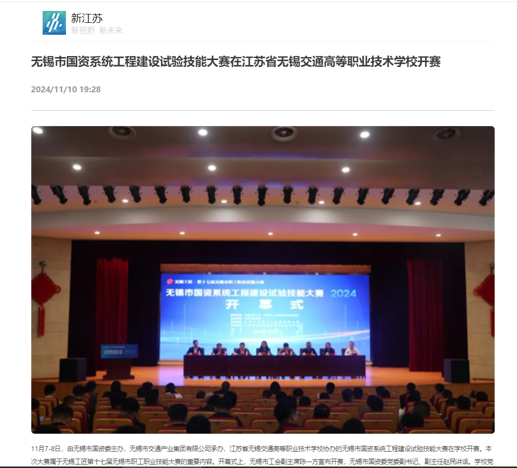 中江网:无锡市国资系统工程建设试验技能大赛在江苏省无锡交通高等职业技术学校开赛