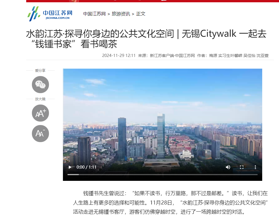 中江网:水韵江苏·探寻你身边的公共文化空间 | 无锡Citywalk 一起去“钱锺书家”看书喝茶