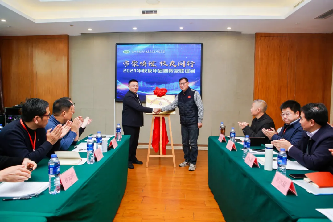 座谈会上,与会嘉宾共同观看了学校宣传片,深入了解学校发展历程与辉煌成就。随后,学校党委书记、校长李进与太湖湾高校创新创业促进会常务副会长徐暐共同揭牌,这标志着学校正式加入无锡太湖湾高校创新创业促进会,成为该促进会的会员单位,也标志着学校在推动校友工作方面迈出坚实的一步。