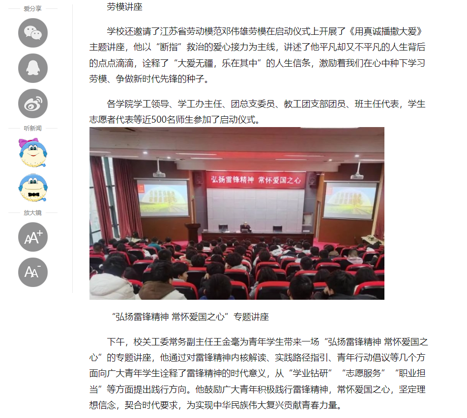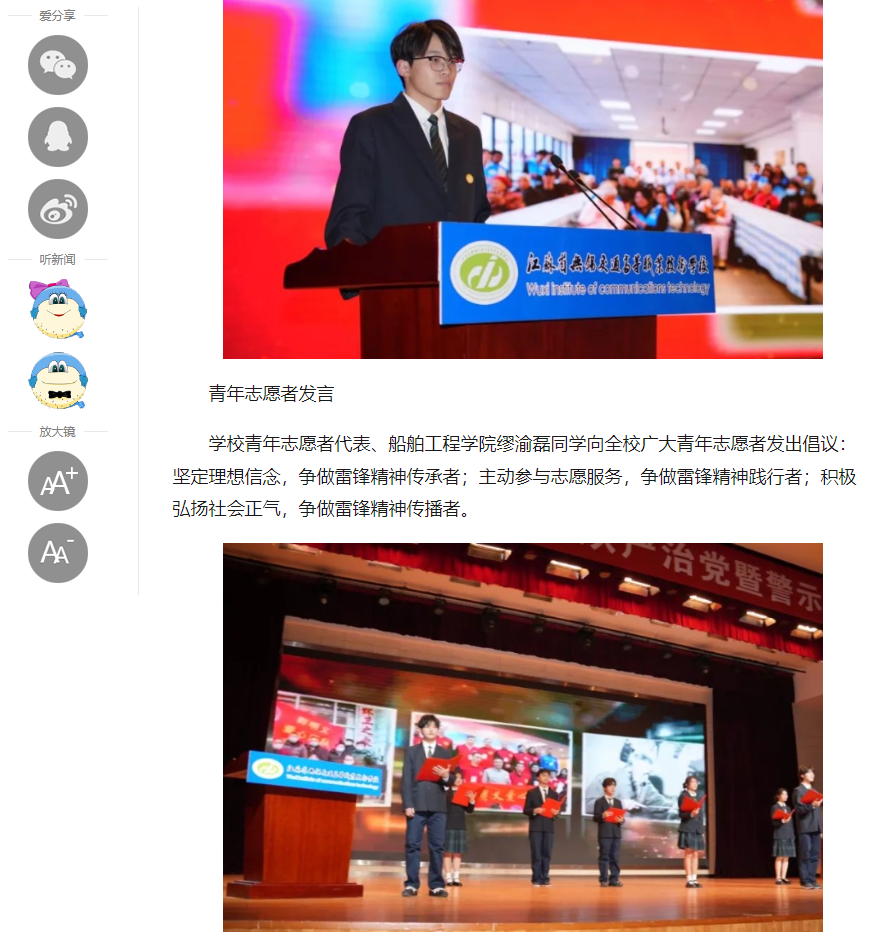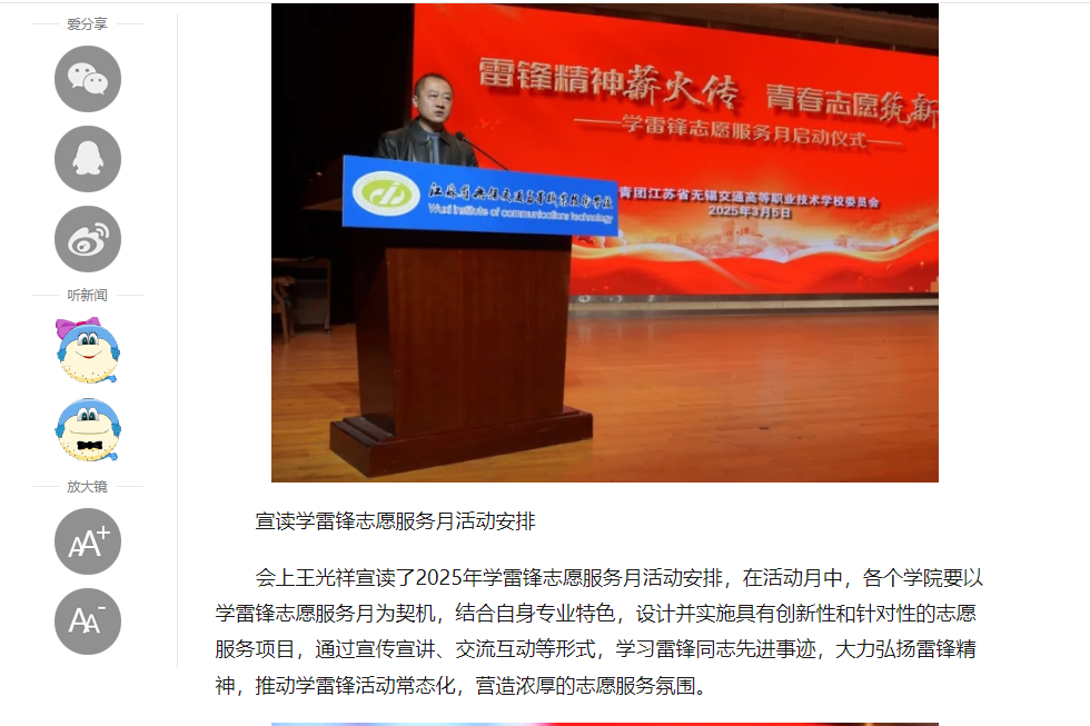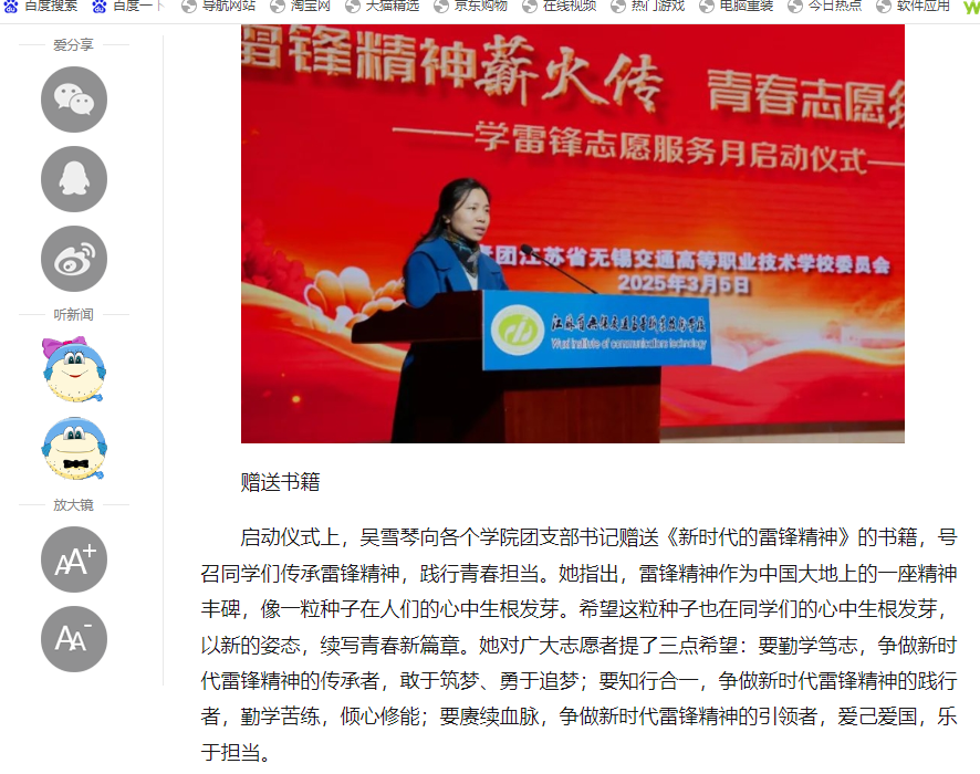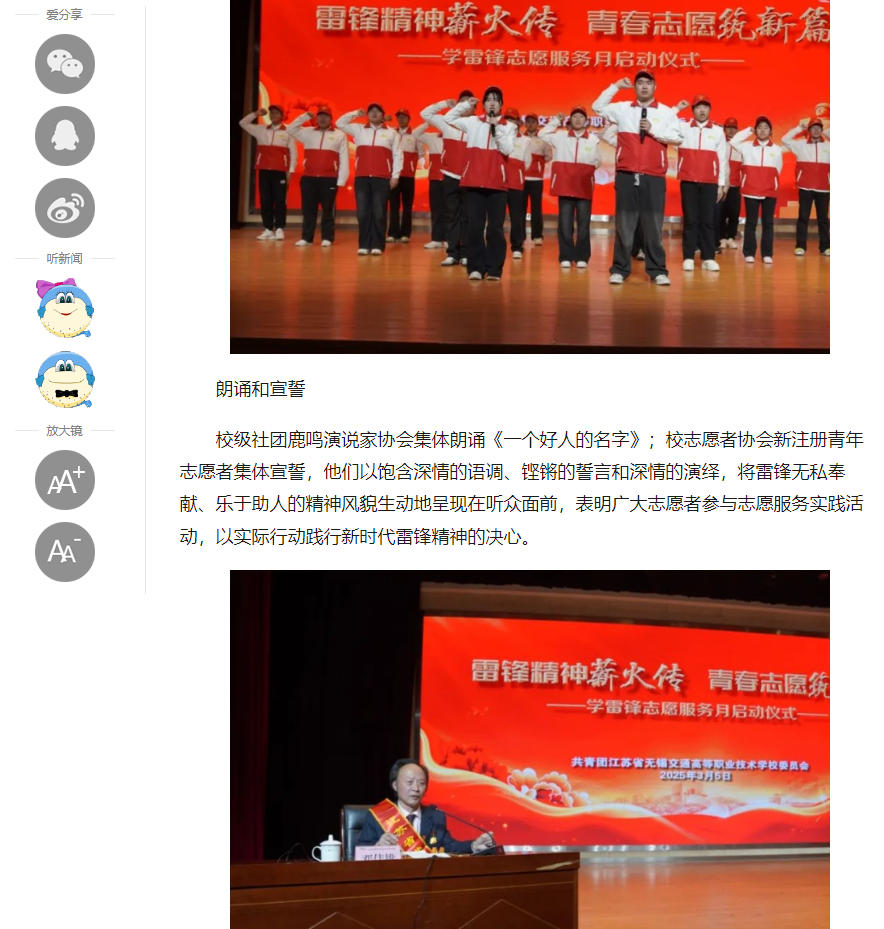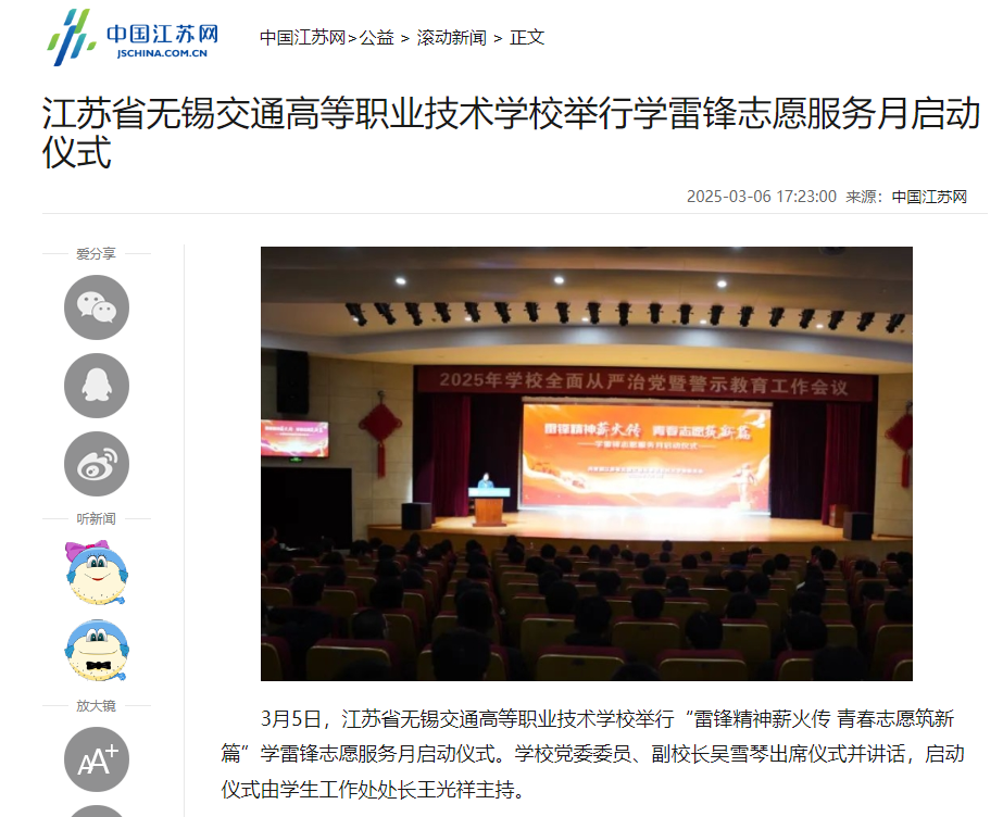 中江网:江苏省无锡交通高等职业技术学校举行学雷锋志愿服务月启动仪式