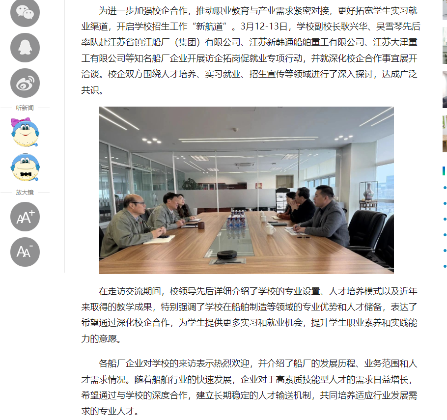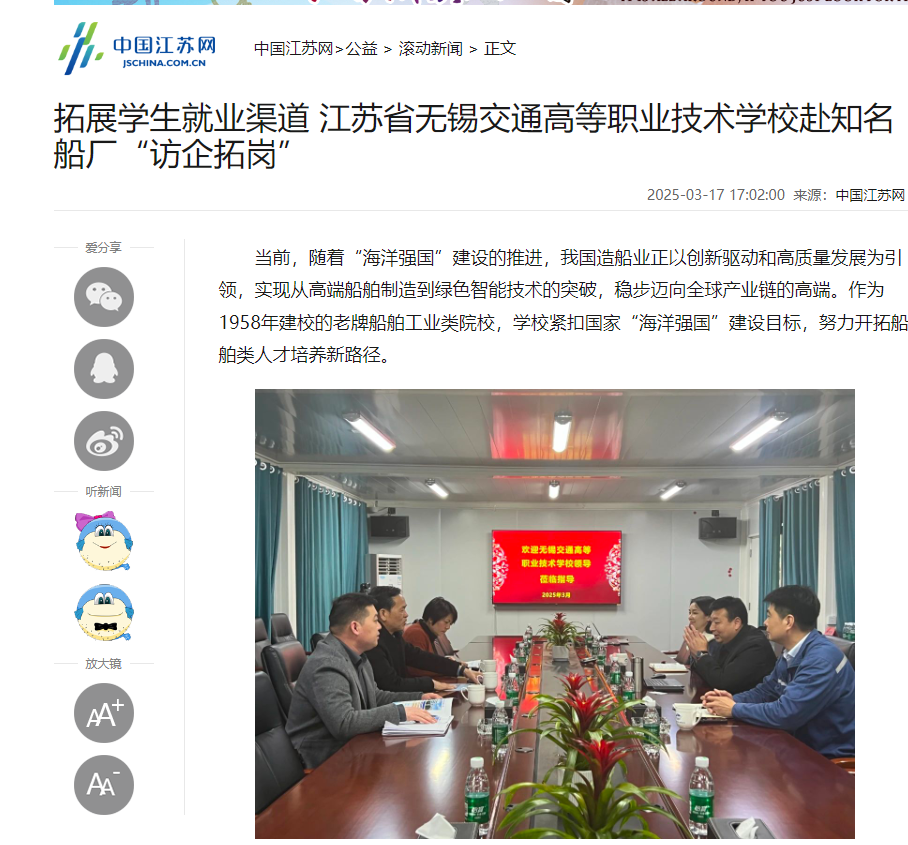 中江网:拓展学生就业渠道 江苏省无锡交通高等职业技术学校赴知名船厂“访企拓岗”