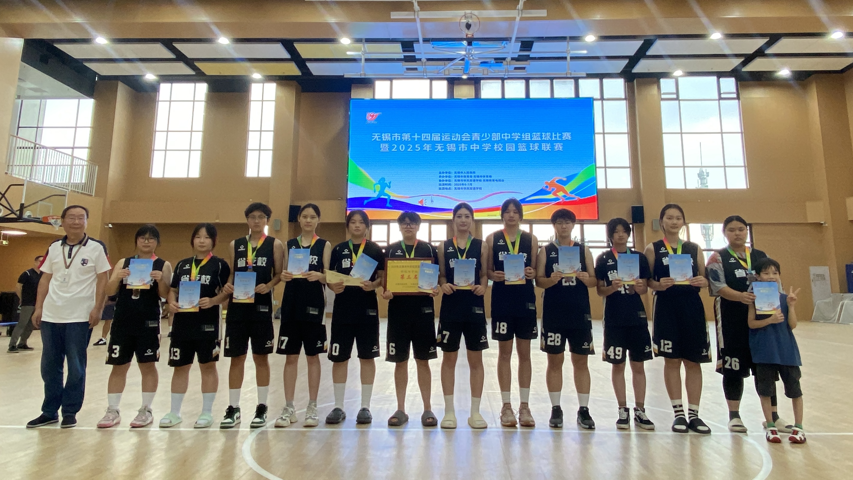 630日,无锡市第十四届运动会青少年部中学组篮球比赛暨2025年无锡市中学校园篮球联赛圆满落幕,学校男、女篮球队再创佳绩,续写辉煌。男篮一路披荆斩棘,最终勇夺亚军;女篮表现亮眼,成功摘得季军奖杯。