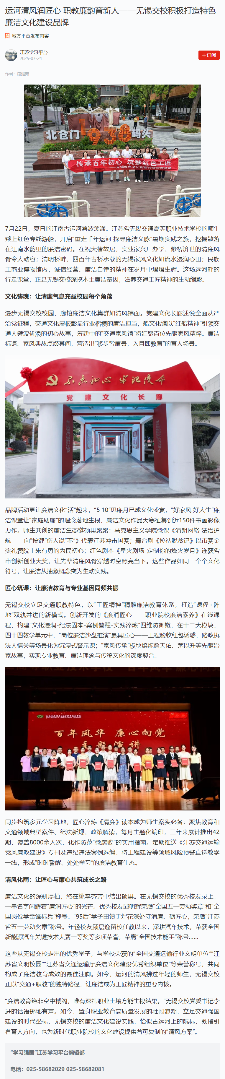 学习强国:运河清风润匠心 职教廉韵育新人——无锡交校积极打造特色廉洁文化建设品牌
