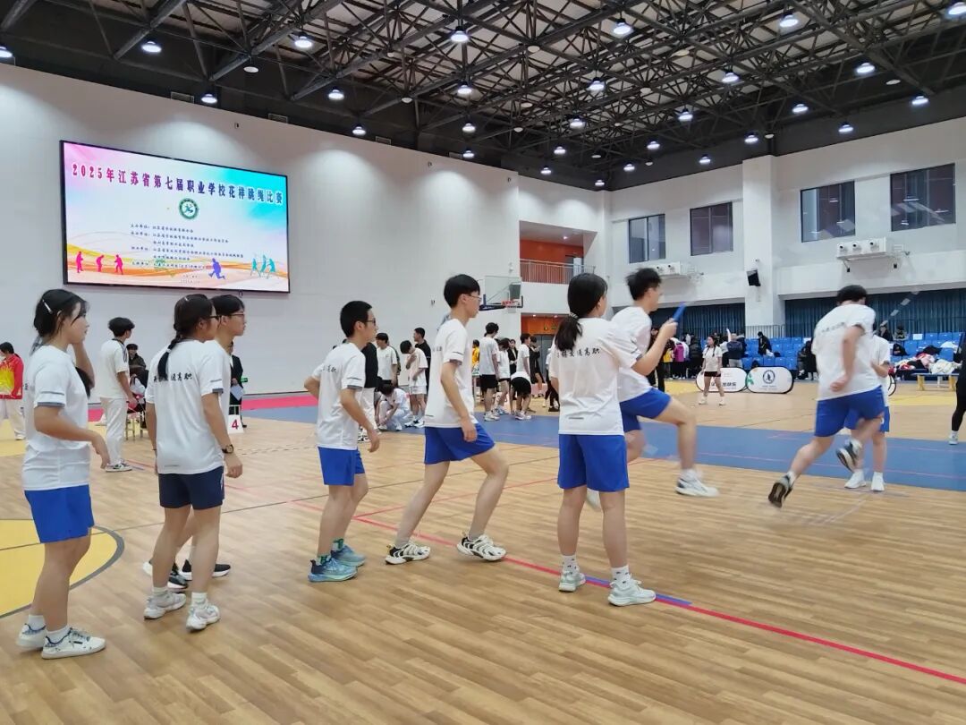 12月3-5日,2025年江苏省第七届职业学校花样跳绳比赛在扬州高等职业技术学校圆满落幕。本届赛事吸引了来自全省的17支代表队,共计338名运动员与教练员同场竞技,场面热烈。今年,学校首次正式组建队伍参加该项赛事的现场角逐,并在激烈的比拼中脱颖而出。来自汽车工程学院的尤晶茹同学一鸣惊人,在高职女子组30秒双摇跳项目中力压近30名对手,以绝对优势夺得该项目第一名。实现了首次参赛便在省赛中夺金的好成绩!