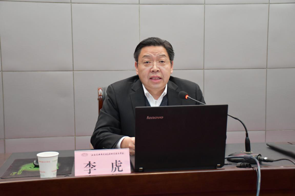 11月4日下午,学校2020年业余党校培训班开班典礼在学术报告厅举行。开班典礼由校党委委员、副校长邢勇同志主持,学校党委书记、校长李虎同志以《十九届五中全会精神》为主题进行开班第一讲。各党总支(直属党支部)书记及130余名学员参加了开班典礼。