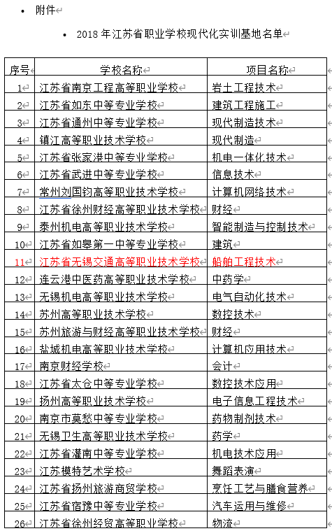 1.2018年江苏省职业学校现代化实训基地名单