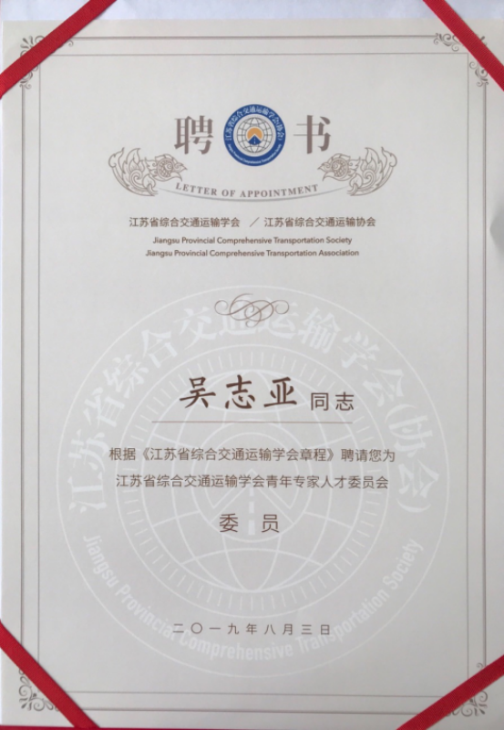 江苏省综合交通运输学会青年专家人才委员会委员