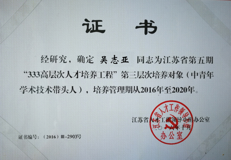 江苏省“333高层次人才培养工程”第三层次培养对象