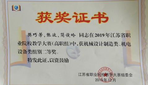 江苏省职业院校教学大赛(高职组)二等奖