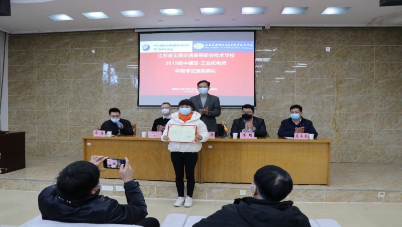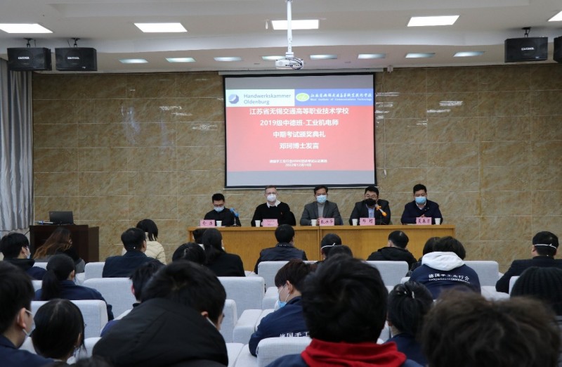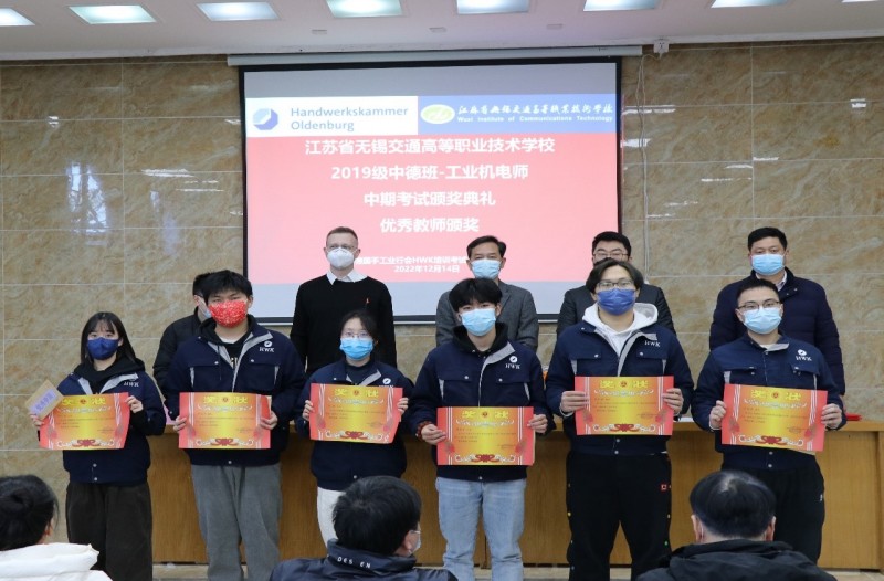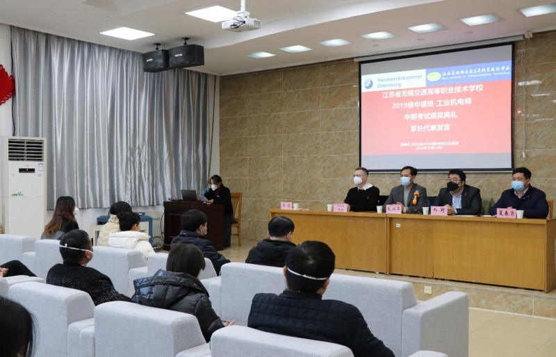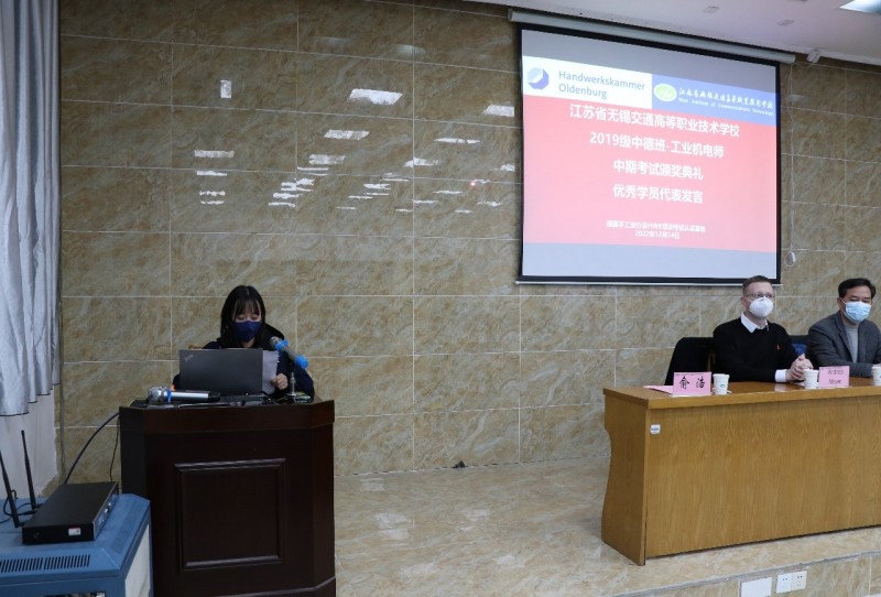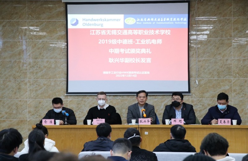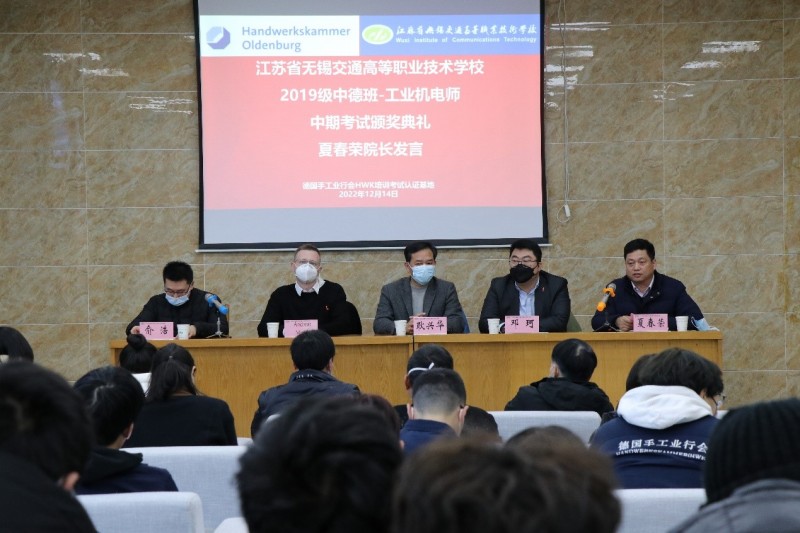 为进一步开展好德国手工业行会工业机电师培养项目,不断总结经验和成果,激励同学们将更多的精力投入到项目学习中,机电工程学院与德国手工业行会中国项目办于2022年12月14日下午,在锡澄校区举行了2019级工业机电师中期考试颁奖典礼。学校党委委员、副校长耿兴华,德国手工业行会中国项目办总负责人邓珂博士、机电工程学院院长夏春荣、德国手工业行会教官Andreas Meyer、学院优秀教师、家长代表、全体2019级中德班学生等参加了本次颁奖典礼,会议由机电工程学院副院长俞浩主持。